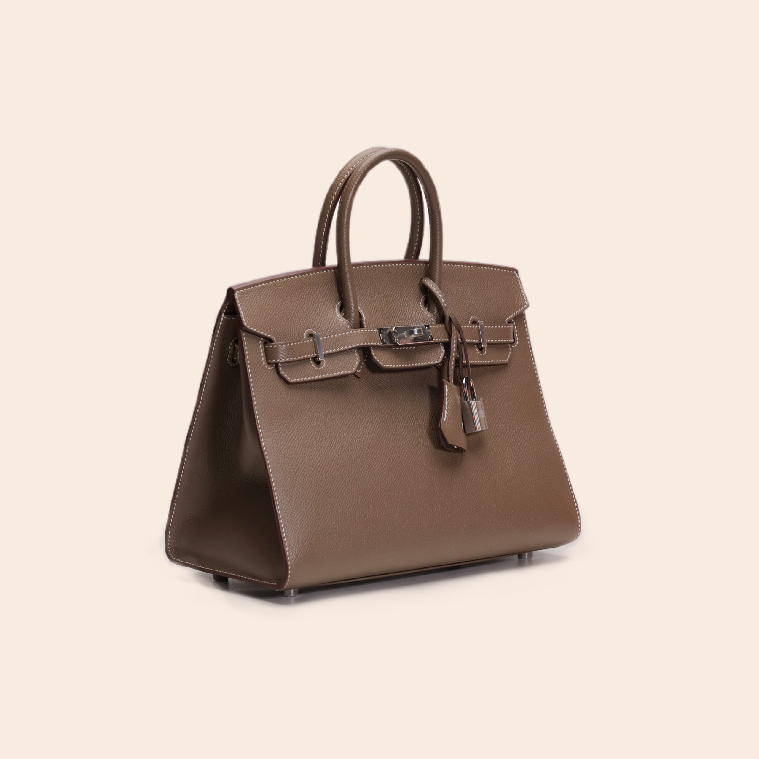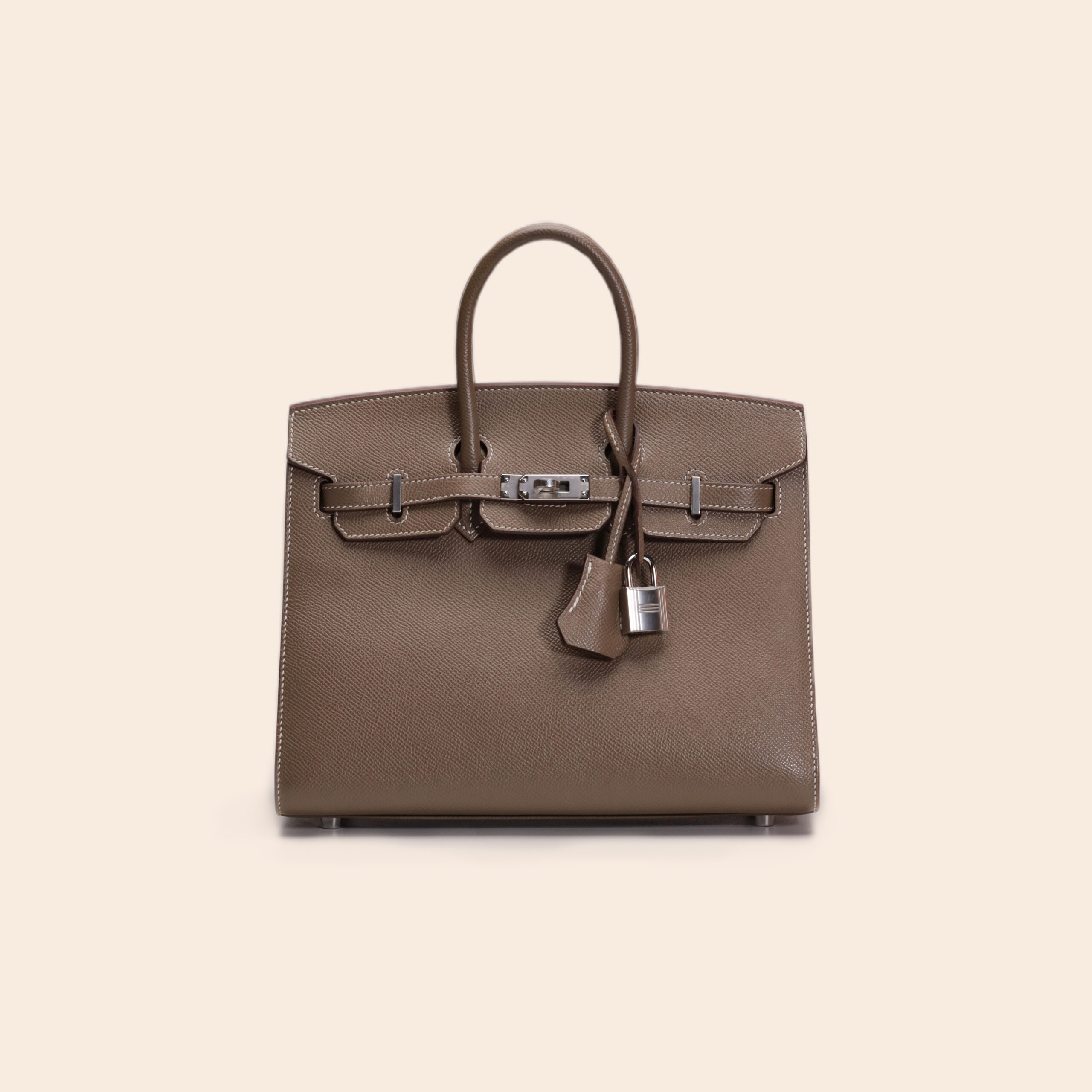 The Hermès Birkin 25 Sellier in Etoupe Epsom leather with Palladium Hardware (PHW), Z stamp, is a structured and elegant statement piece. The cool taupe shade, contrasted with white stitching and sleek silver-tone hardware, gives it a refined and modern edge. Crafted in rigid Epsom leather with sharp Sellier construction, it’s perfect for those who love a polished and timeless look.