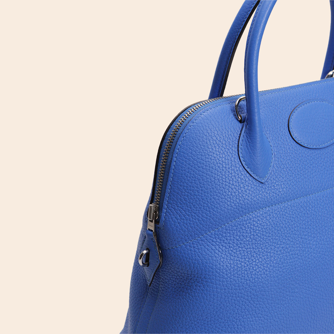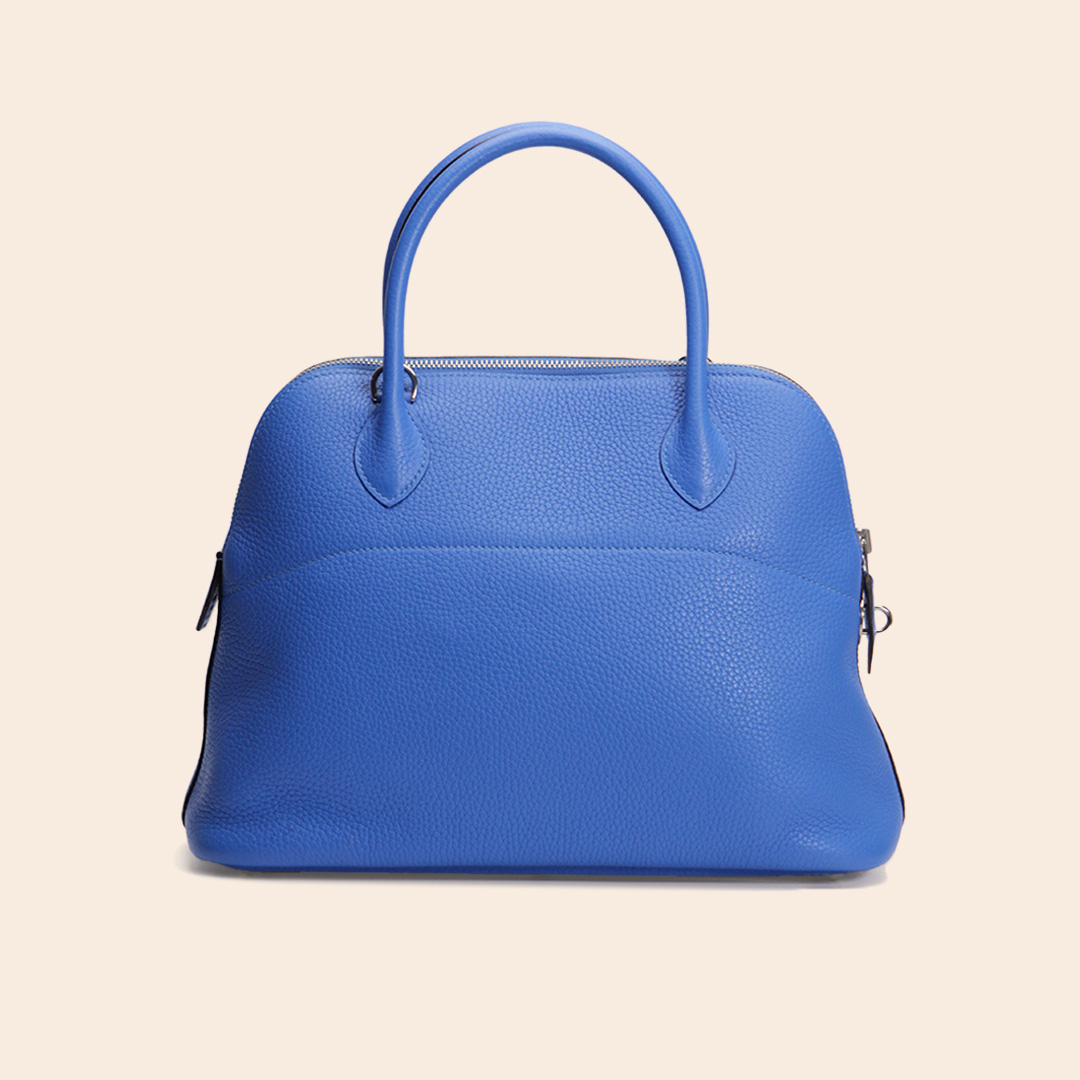 The Hermès Bolide 31 in Blue Hydra is crafted from soft and durable Clémence leather. It features palladium hardware (PHW), a classic full-zip design, and a detachable shoulder strap. Perfectly sized for daily use with a touch of vibrant elegance.