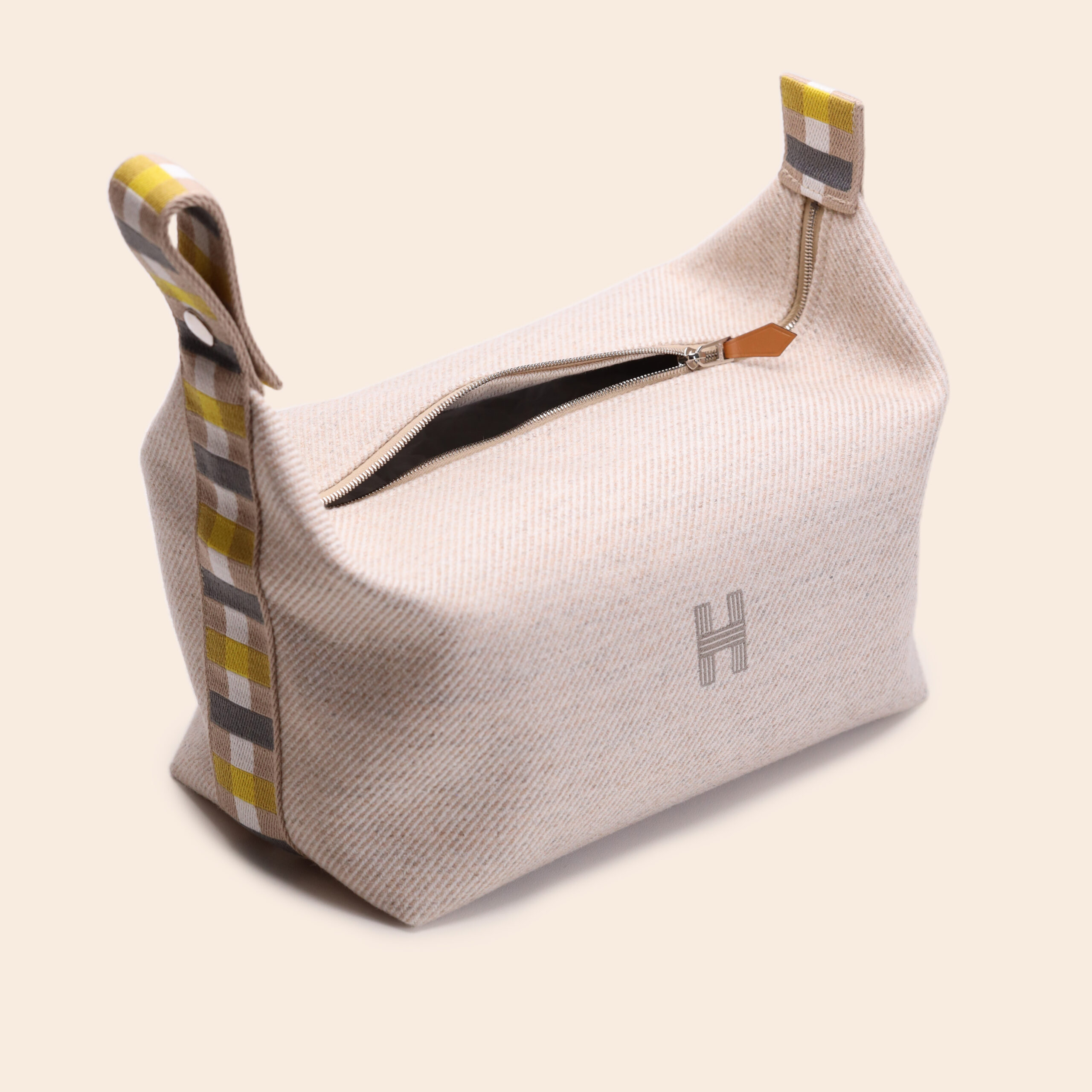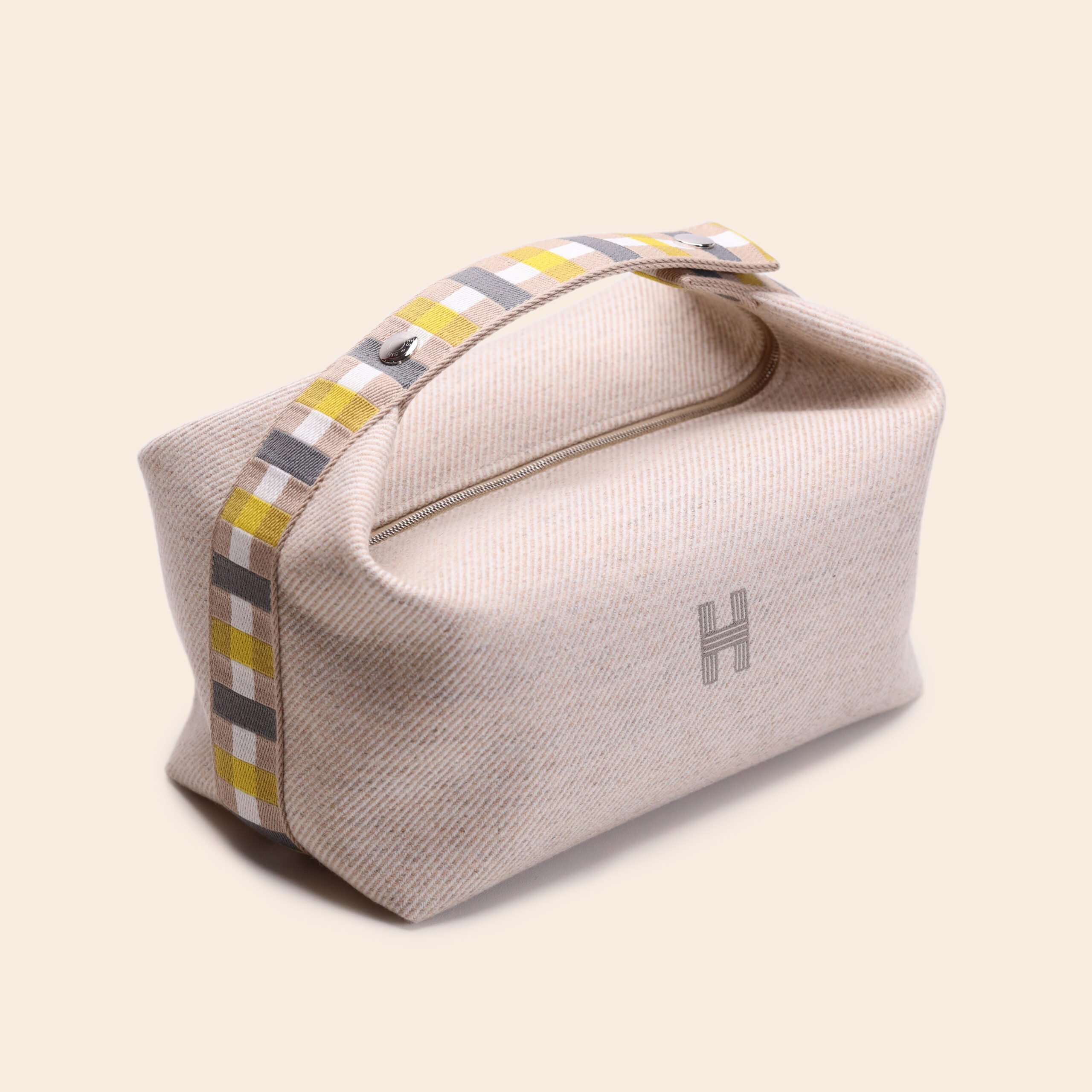 This versatile Seigle-colored pouch in GM (large) size is perfect for storing toiletries, cosmetics, or accessories while traveling. Made from sturdy canvas with leather details and a durable zipper. Lightweight, practical, and stylish.