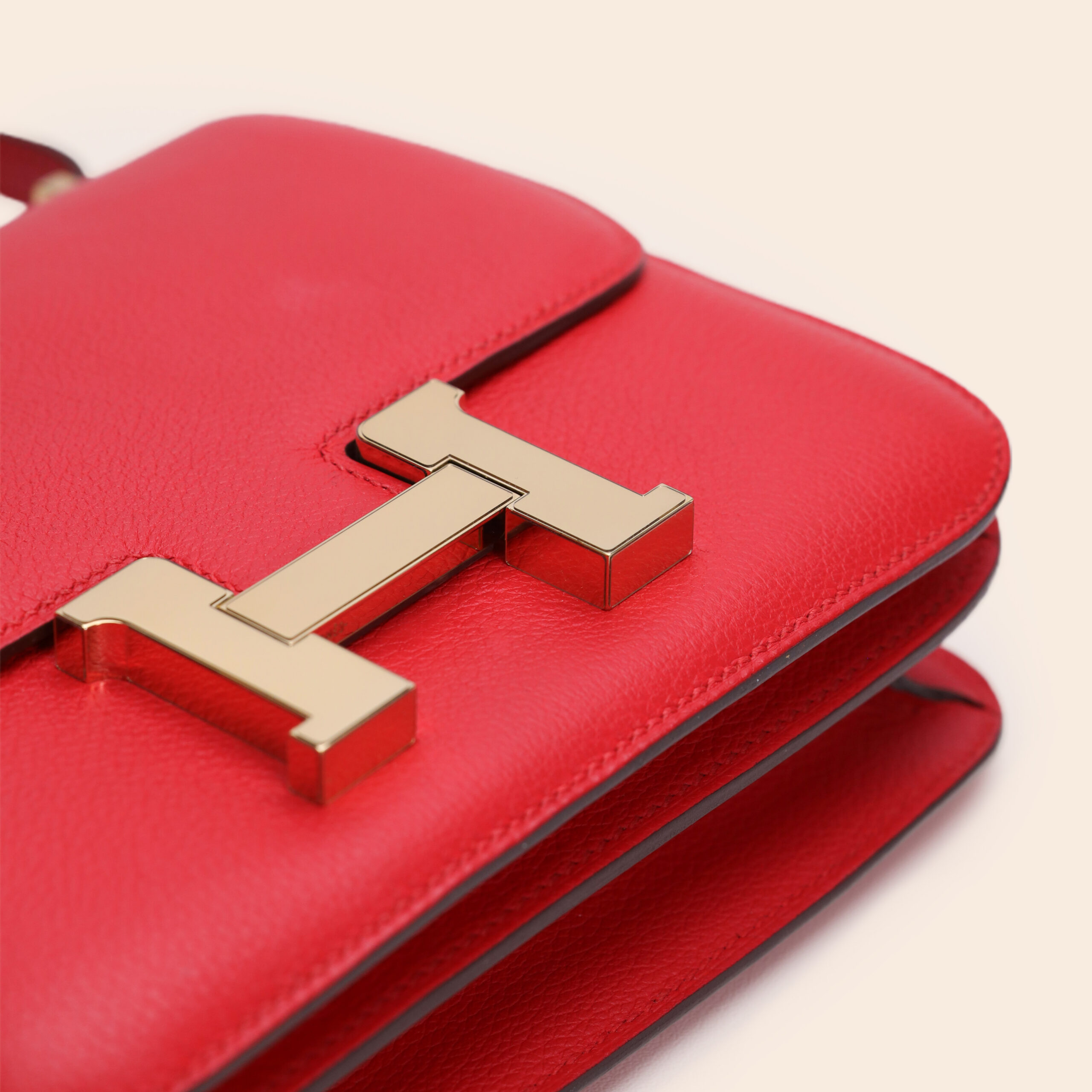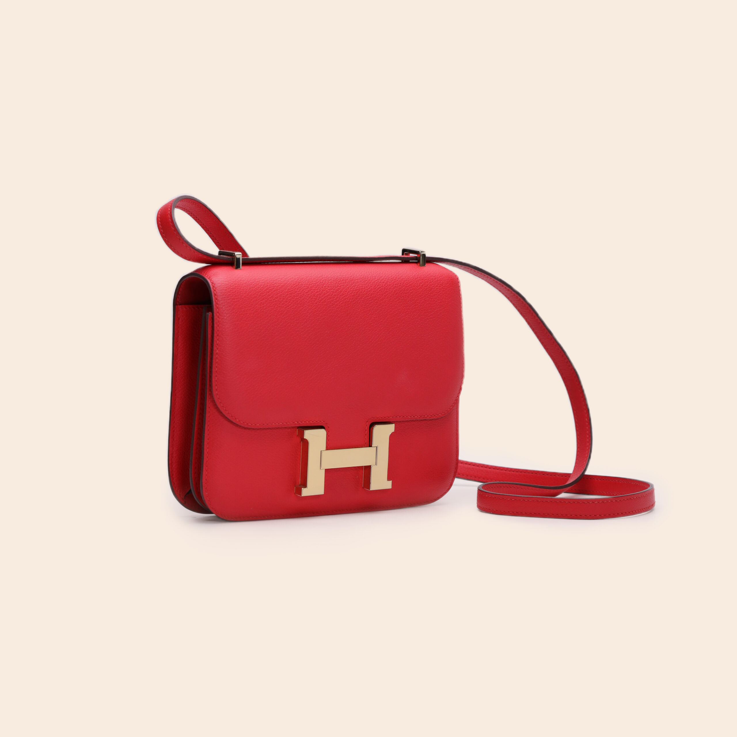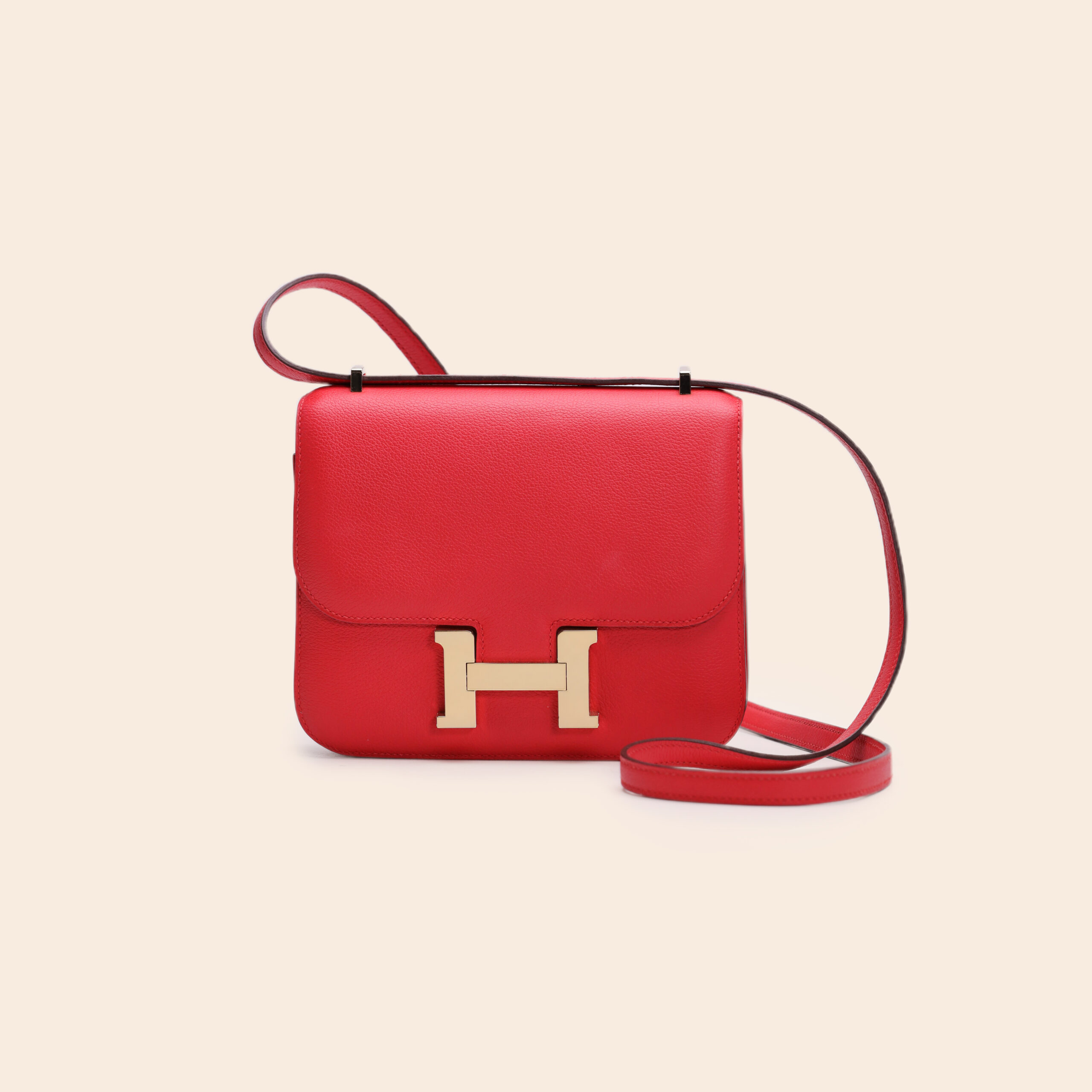 The Hermès Constance 18 RDC/Rouge Vif Evercolor GHW exudes bold elegance with its classic red tone. Crafted from smooth, durable Evercolor leather and finished with gold hardware for a luxurious and feminine touch.