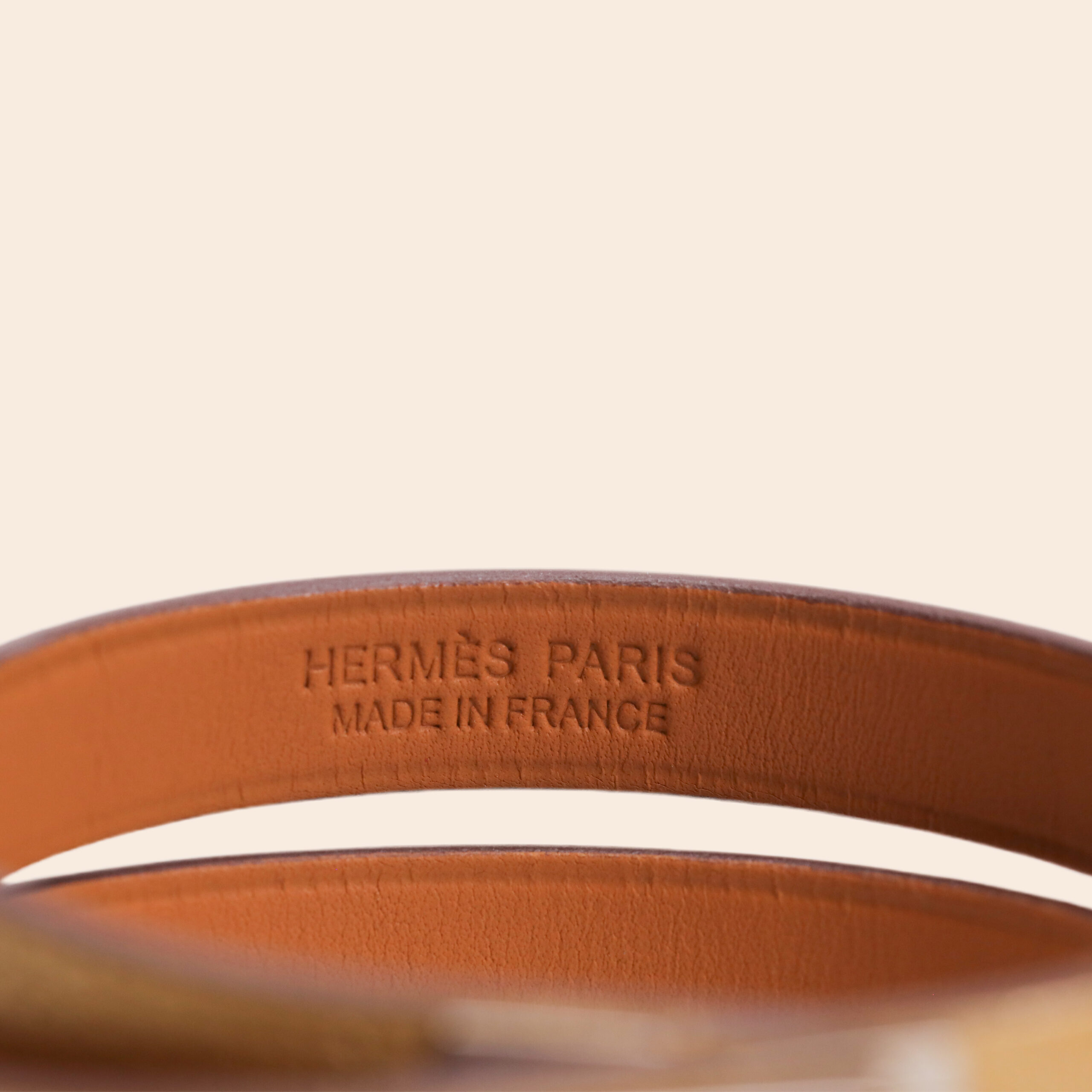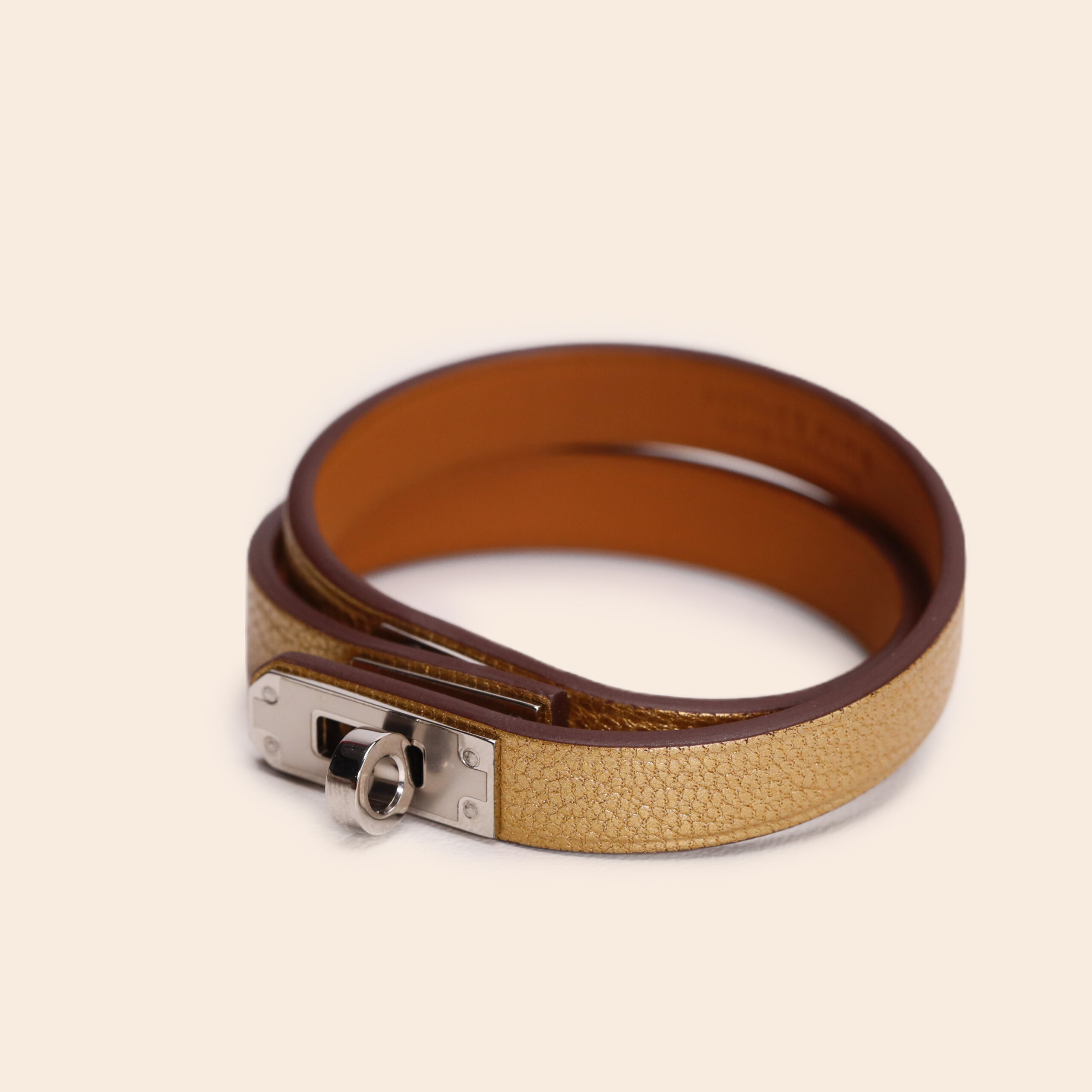 A bold and shimmering double-wrap bracelet in durable chevre leather, finished with palladium hardware. A stylish accessory that adds an elegant or edgy touch to your outfit.