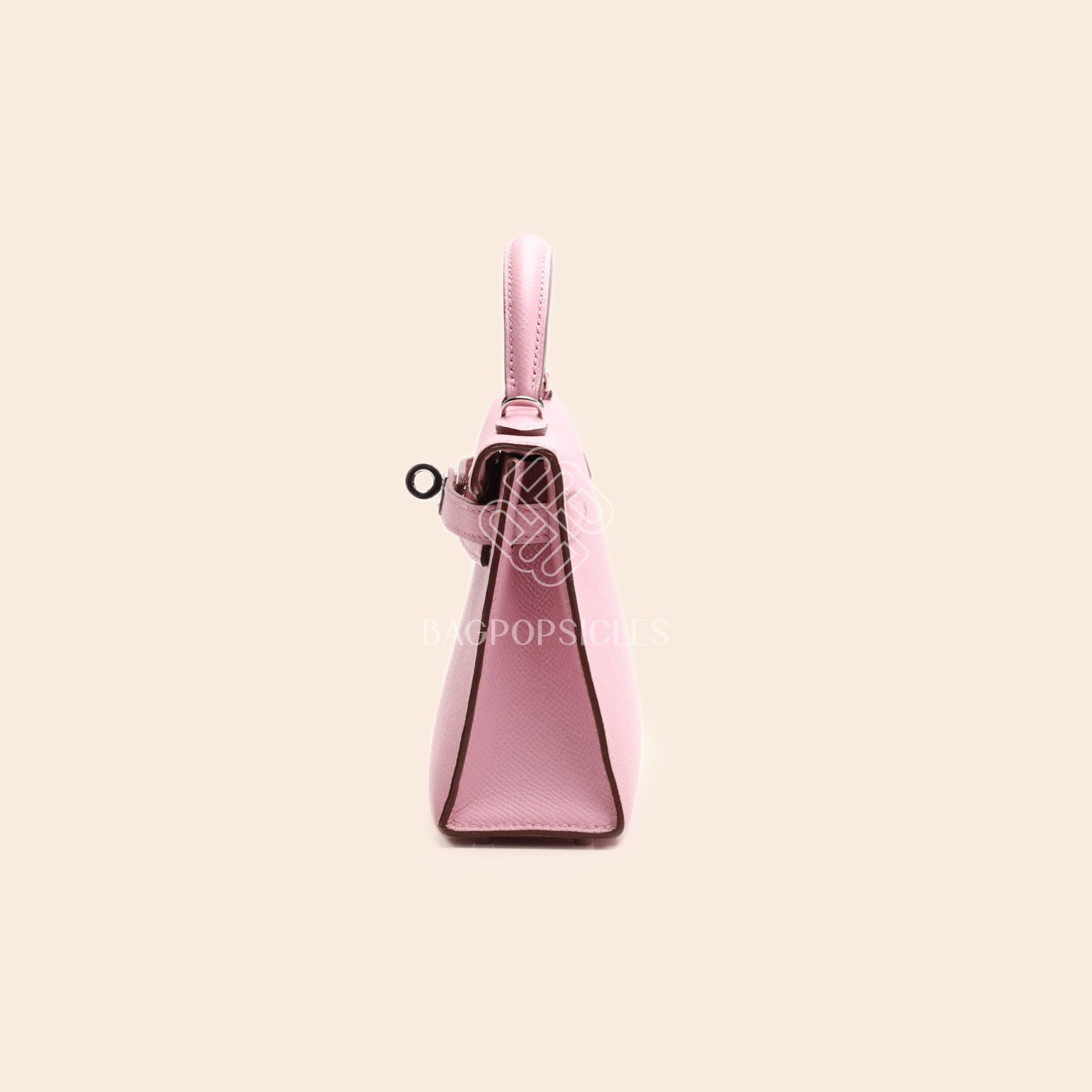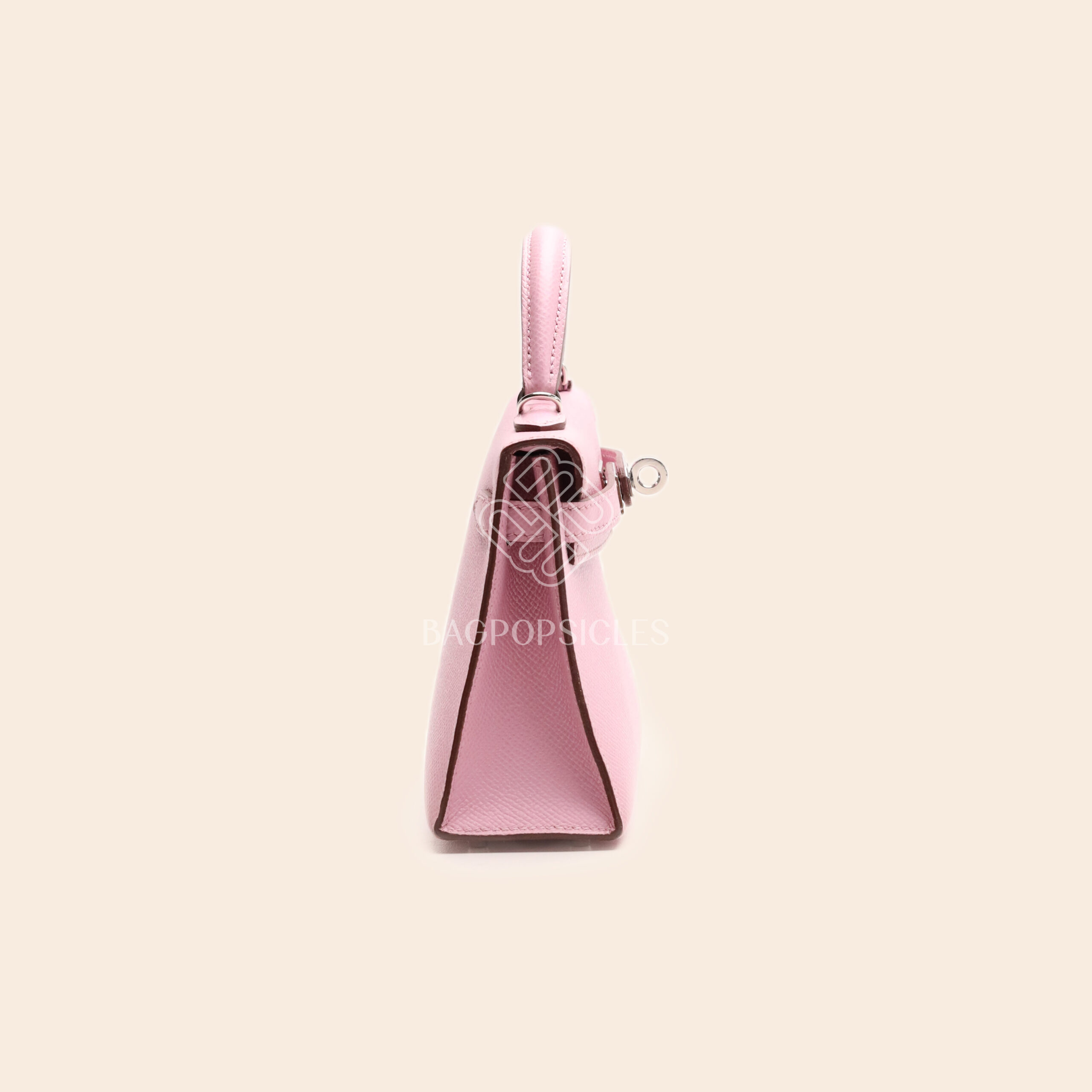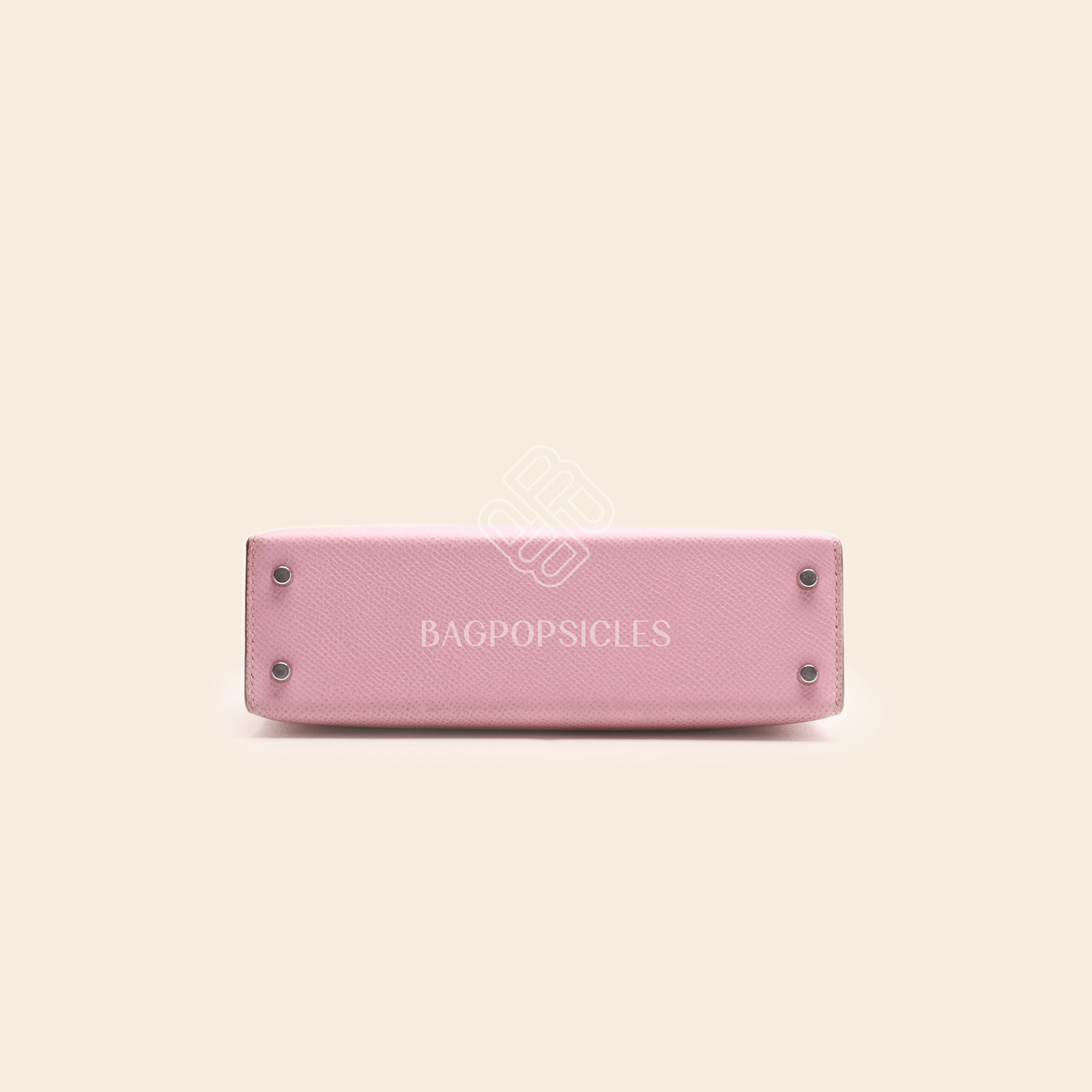This Hermès Kelly 20 in Mauve Sylvestre Epsom features a feminine, modern aesthetic. Crafted from structured Epsom leather and paired with Palladium Hardware (PHW), it offers a clean and elegant finish. A chic mini size perfect for special events or stylish everyday wear.