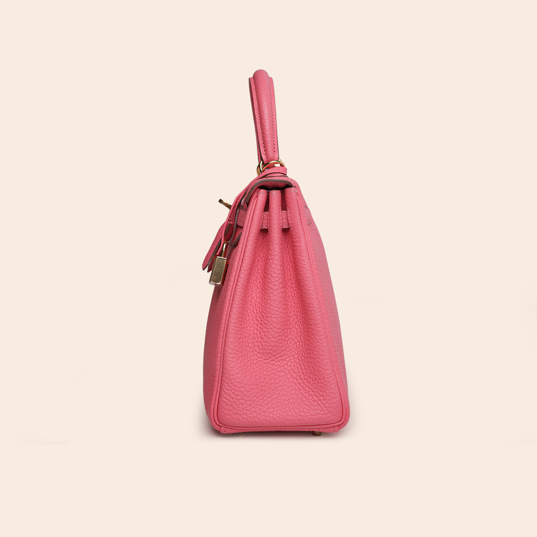 The Hermès Kelly 25 Rose Lipstick Togo GHW Q is an iconic 25 cm handbag in a bold, vibrant pink shade. Crafted from textured Togo leather and finished with Gold Hardware, it offers a luxurious, elegant, yet modern appearance.