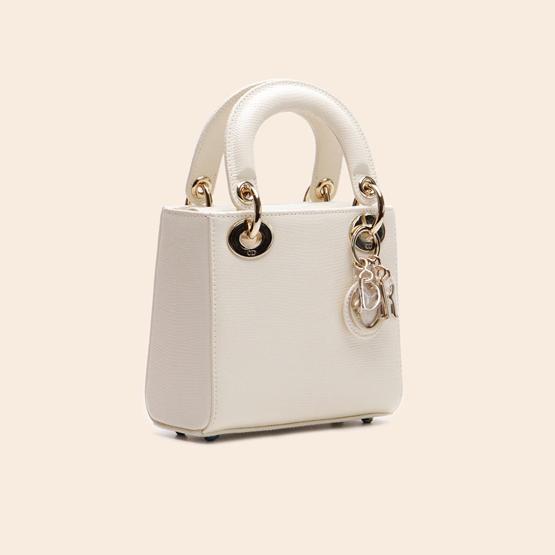 Lady Dior Mini Bag Latte Lizard and Light