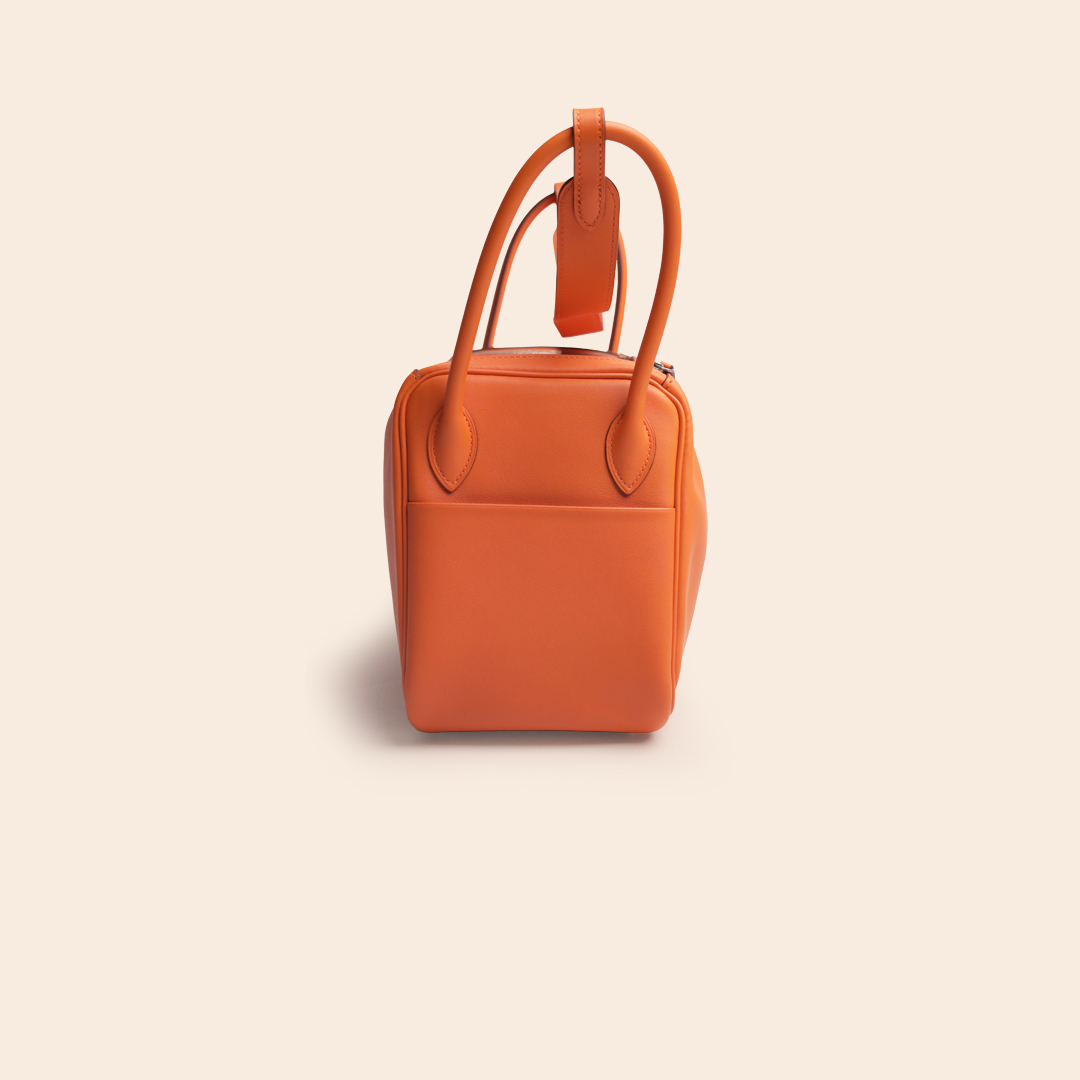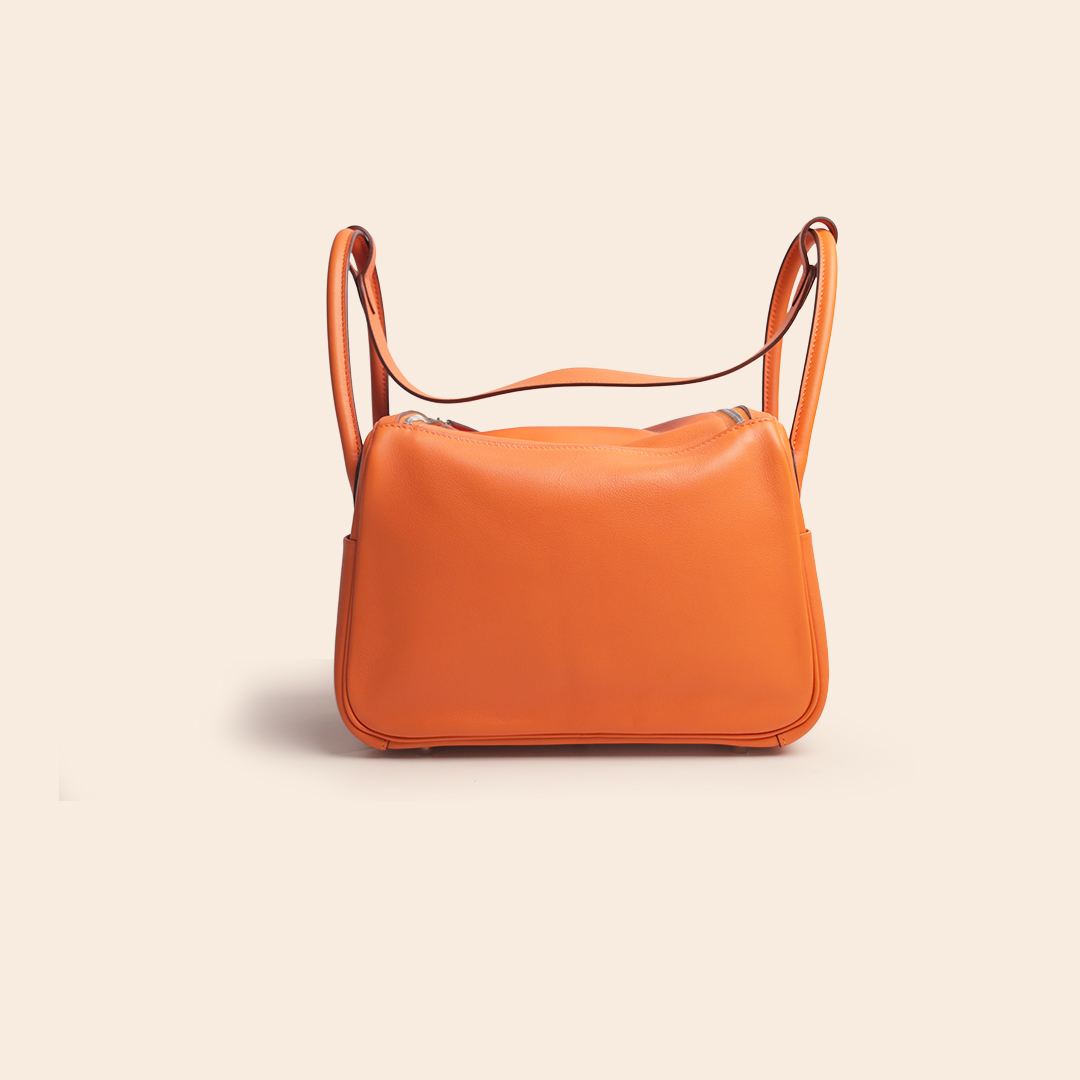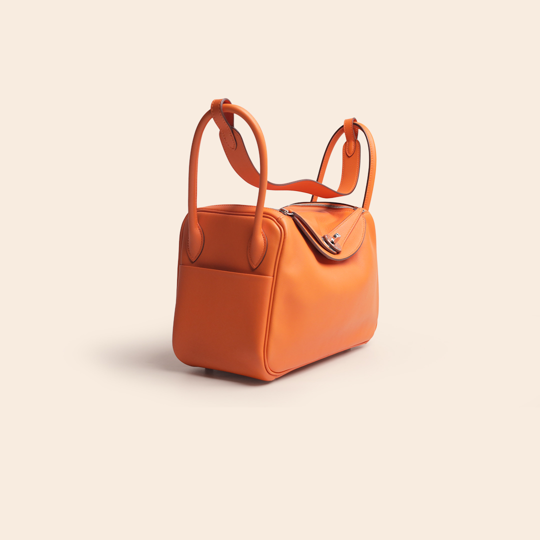 The Hermès Lindy 26 Orange Swift PHW (R Square) is an iconic medium-sized bag in Hermès’ signature orange shade. Crafted from smooth and lightweight Swift leather and finished with Palladium Hardware, it offers a fresh, modern, and elegant look.
