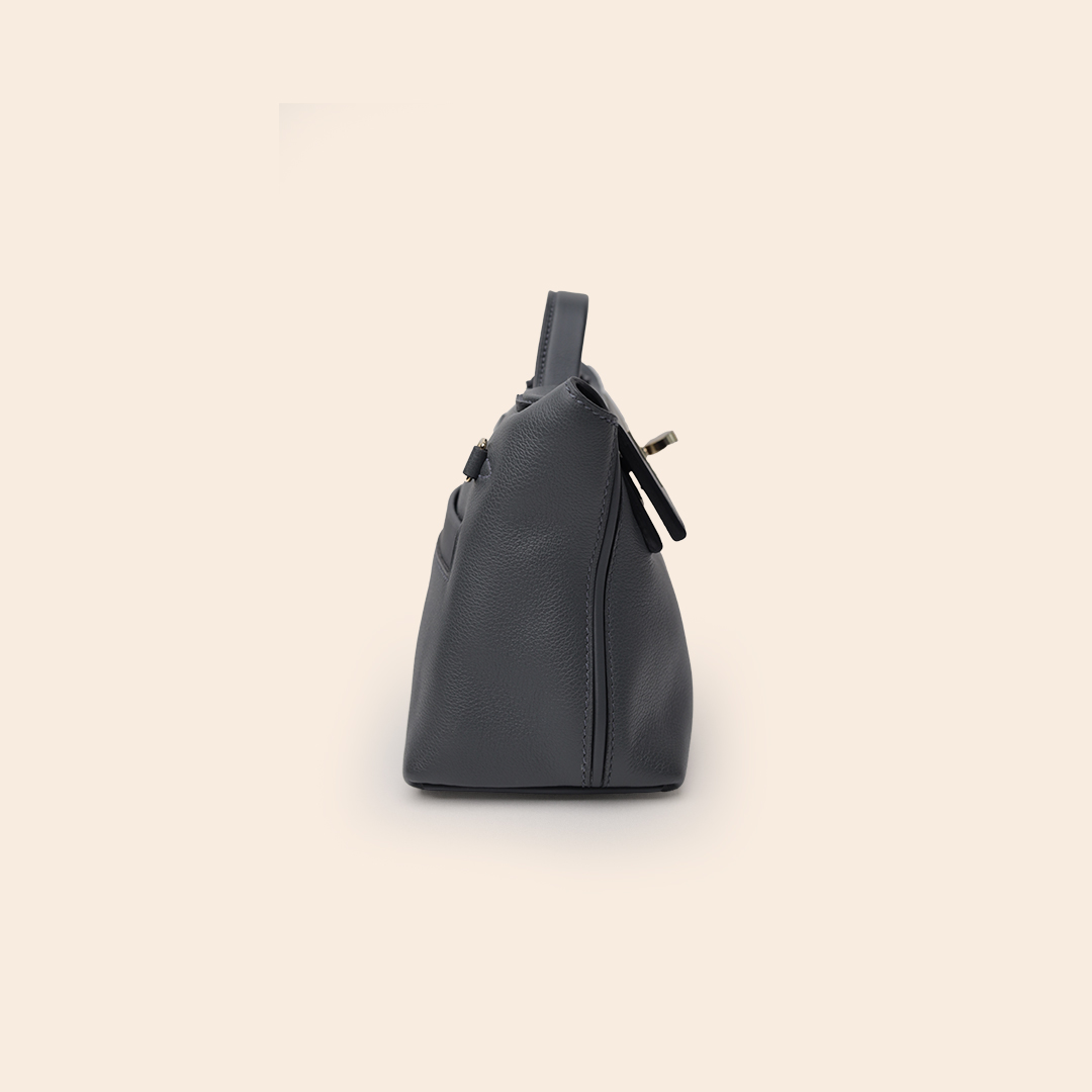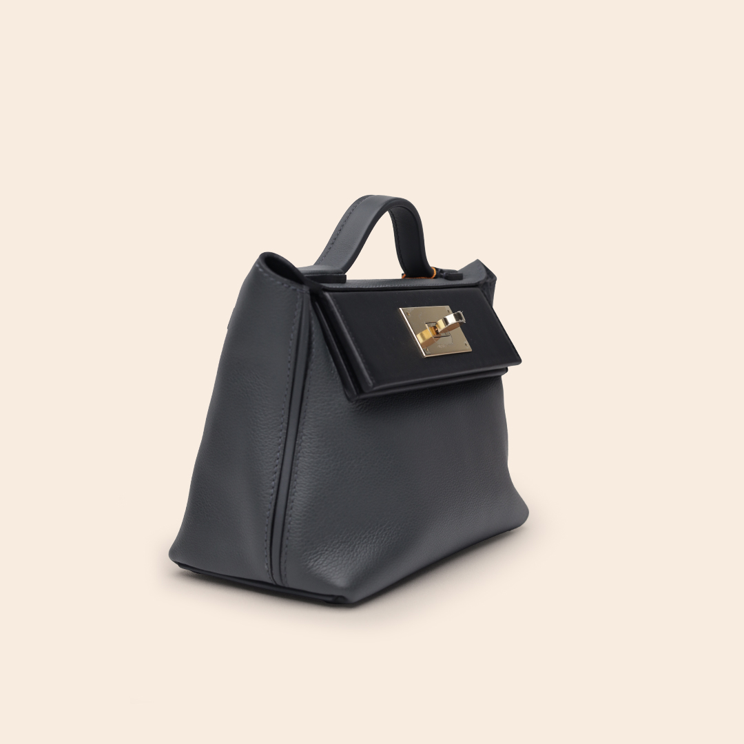 The Hermès Mini 2424 in Gris Misty and Black is crafted from smooth, durable Evercolor leather. Finished with Gold Hardware (GHW), this bag offers a modern, sleek, and elegant look—perfect from day to evening wear.