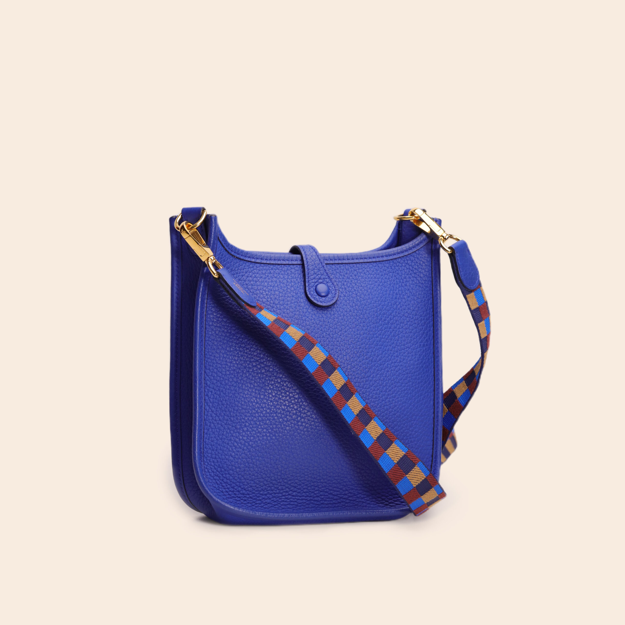 The Mini Evelyne in vibrant Blue France offers a fresh and youthful look. Crafted from supple, durable Clemence leather and accented with gold hardware. Lightweight and functional—perfect for casual, everyday wear. ZZ stamp (2021).