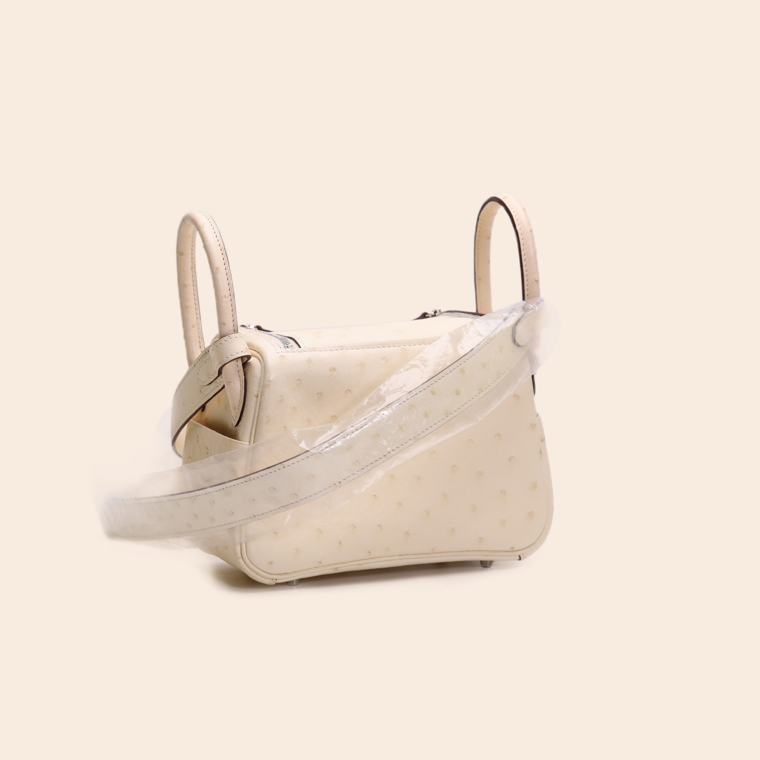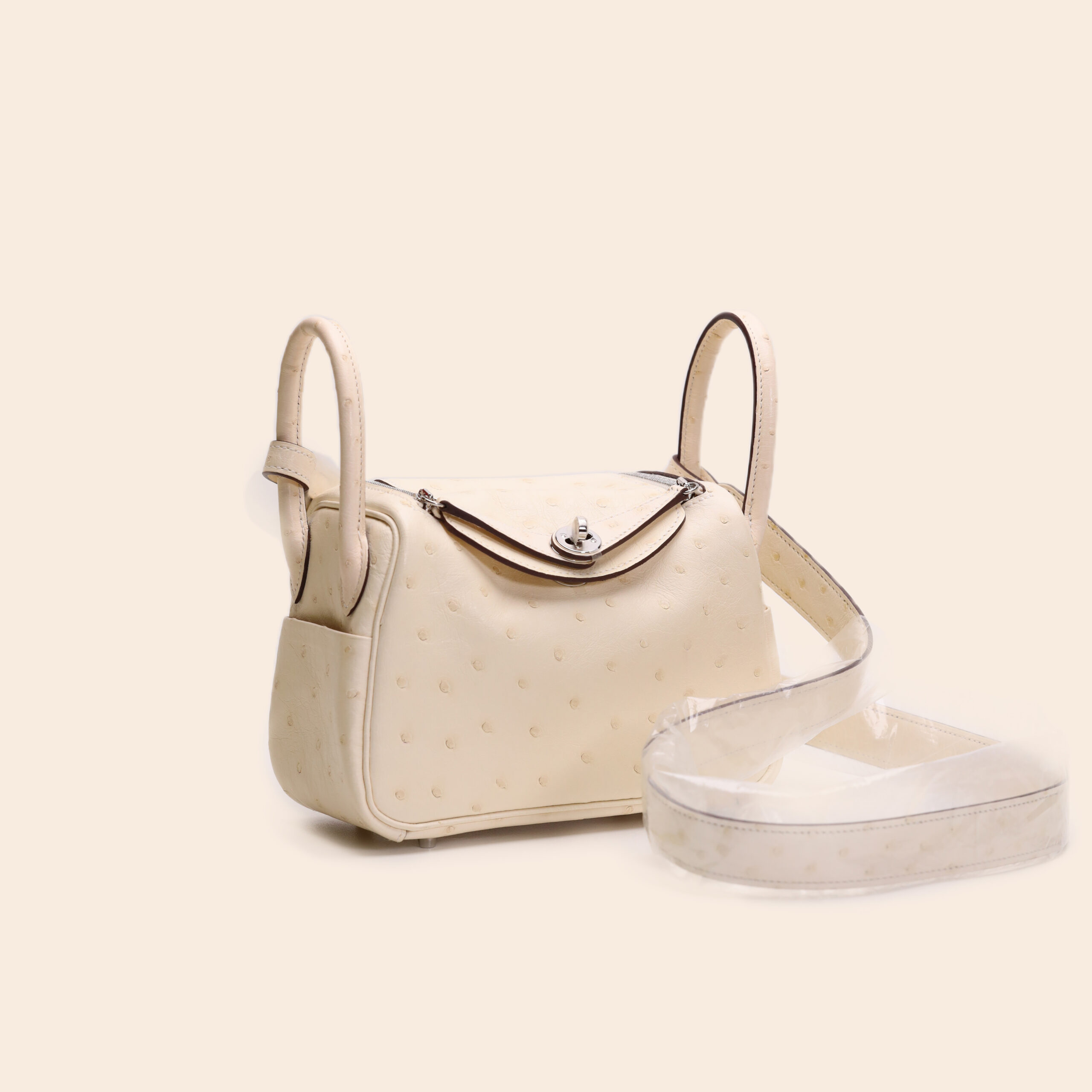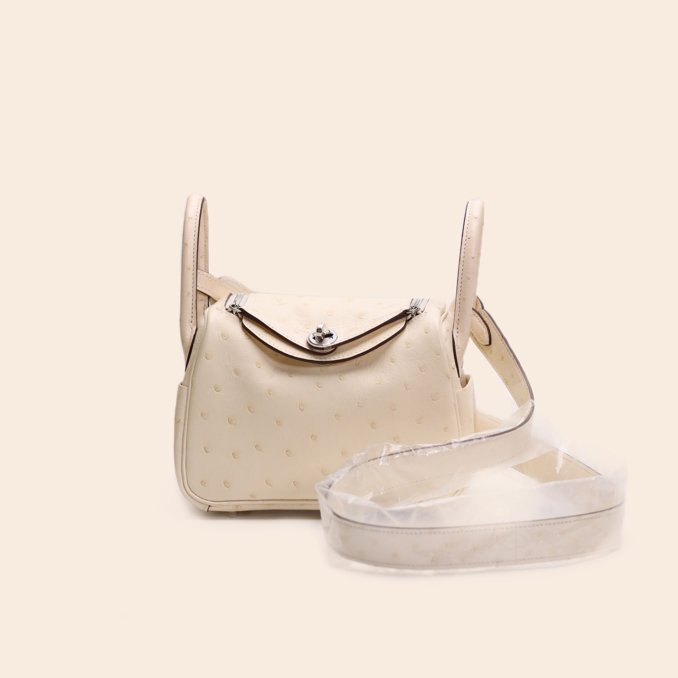 This Hermès Mini Lindy in Nata is crafted from luxurious, lightweight ostrich leather with elegant palladium hardware (PHW). Its compact design is perfect for a chic everyday look. The year code U indicates it was produced in 2022.