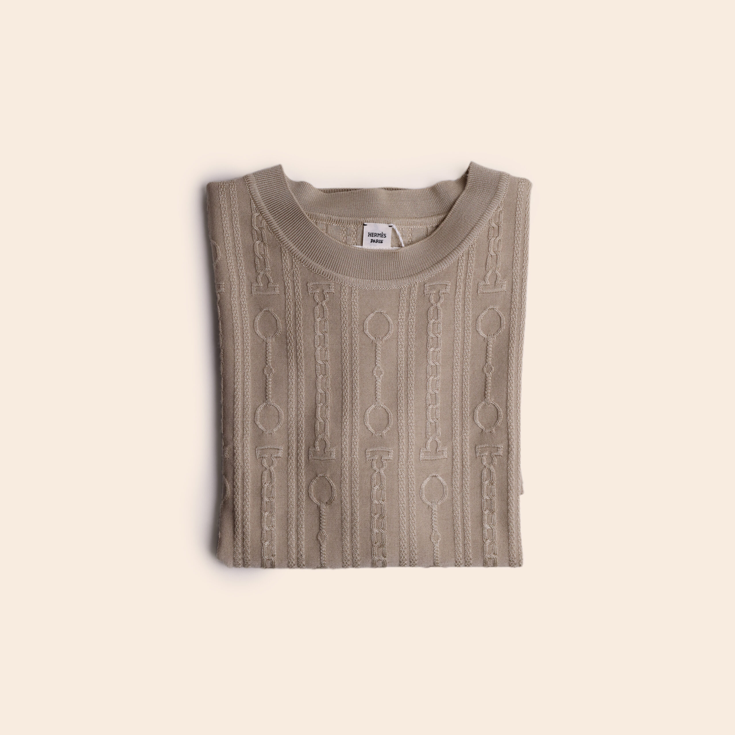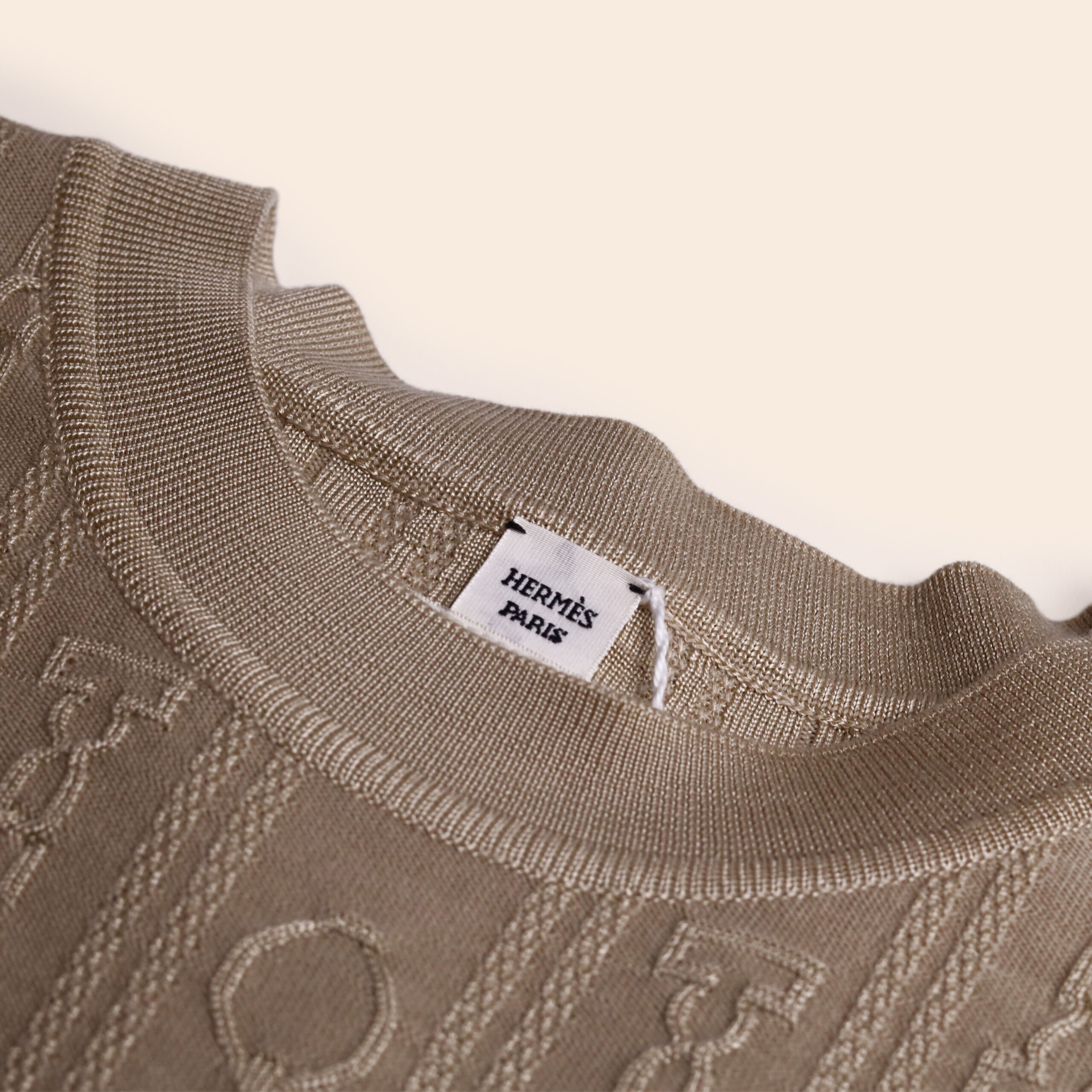 An elegant short-sleeve sweater featuring an artistic kaleidoscope pattern in a neutral beige tone. Crafted from high-quality fabric for a light and comfortable feel — perfect for a casual yet refined look.