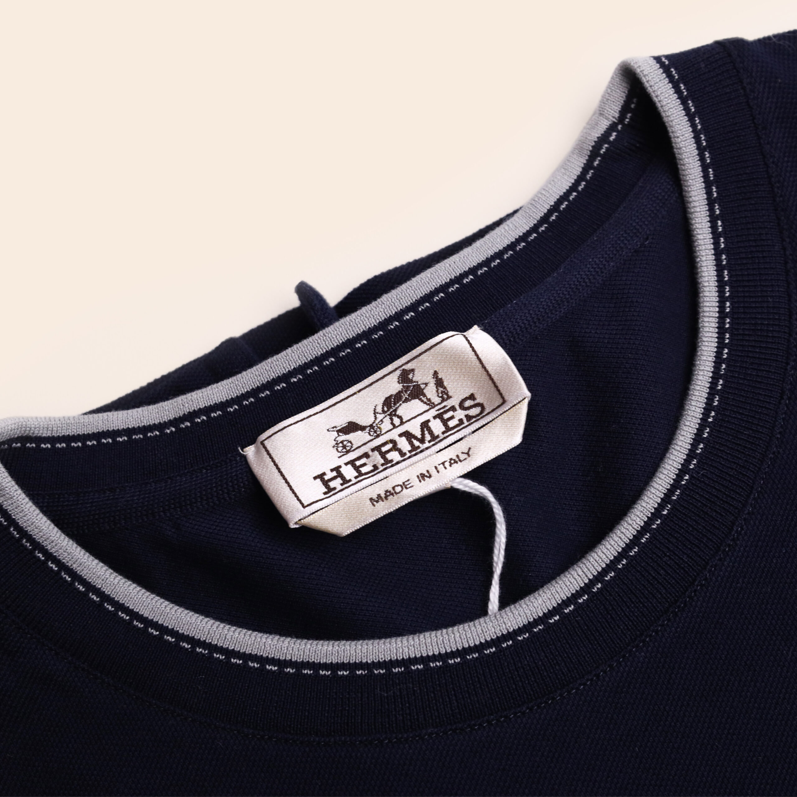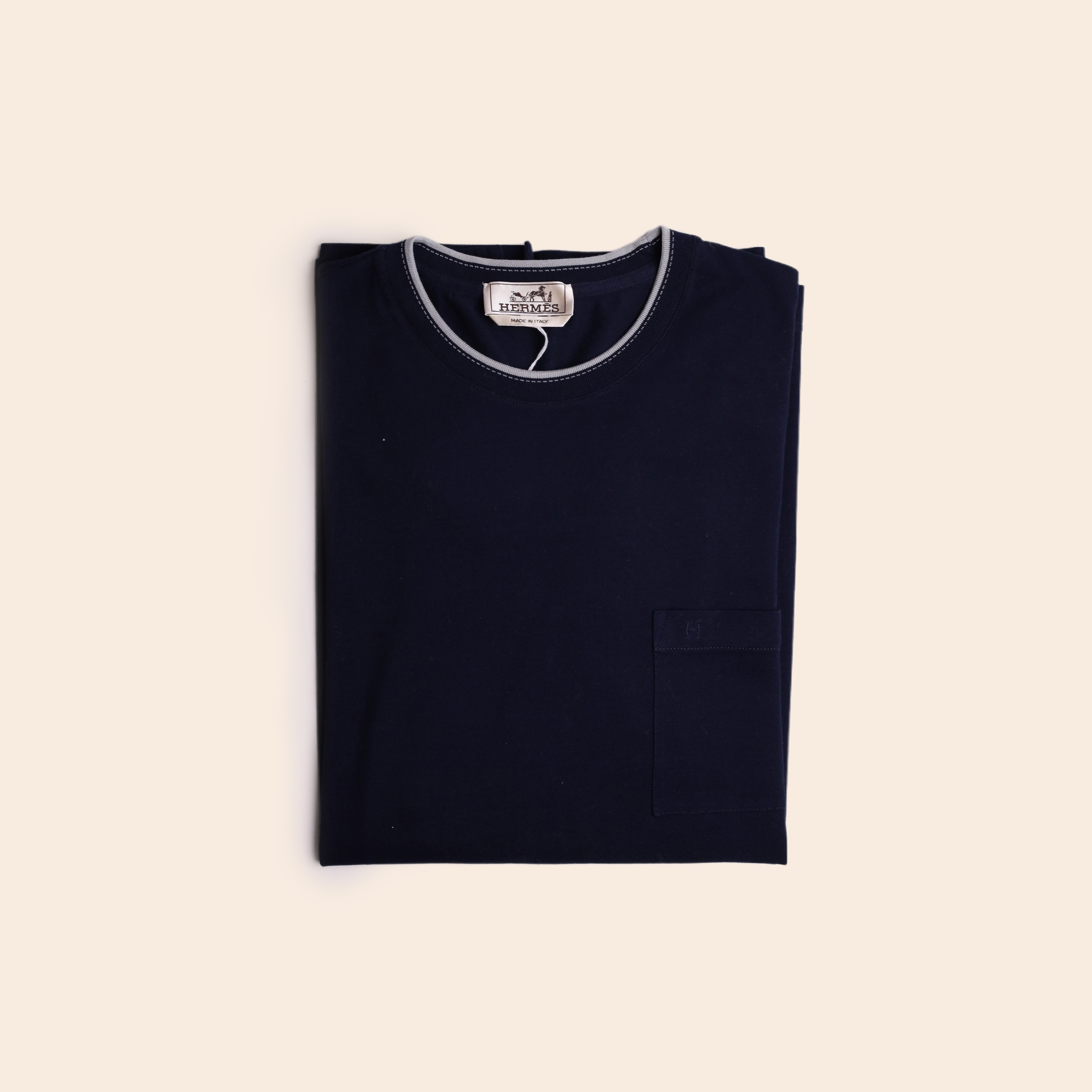 An elegant navy blue t-shirt with signature Sellier topstitch detailing on the shoulders and sleeves. Made from soft premium cotton, ideal for a refined casual look.